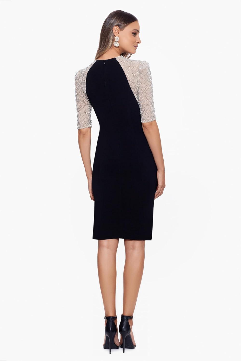 Xscape Women’s Beaded Half Sleeve Knee Length Bodycon Cocktail Formal Dress(Black/Nude/Silver)