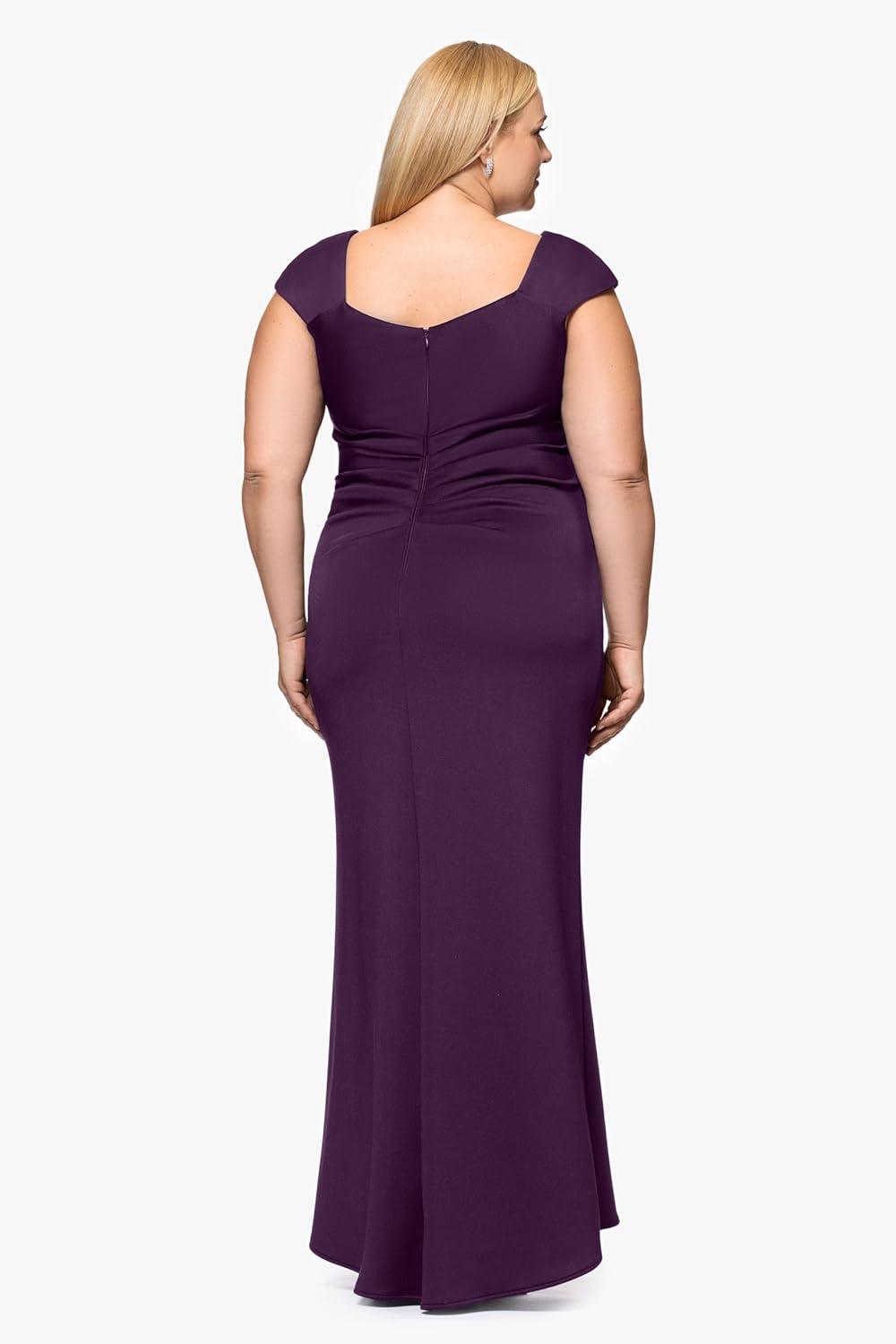 Xscape Womens Betsy & Adam Women’s Scuba Asymmetrical Ruffle One Shoulder Floor Length Dress(Plum)