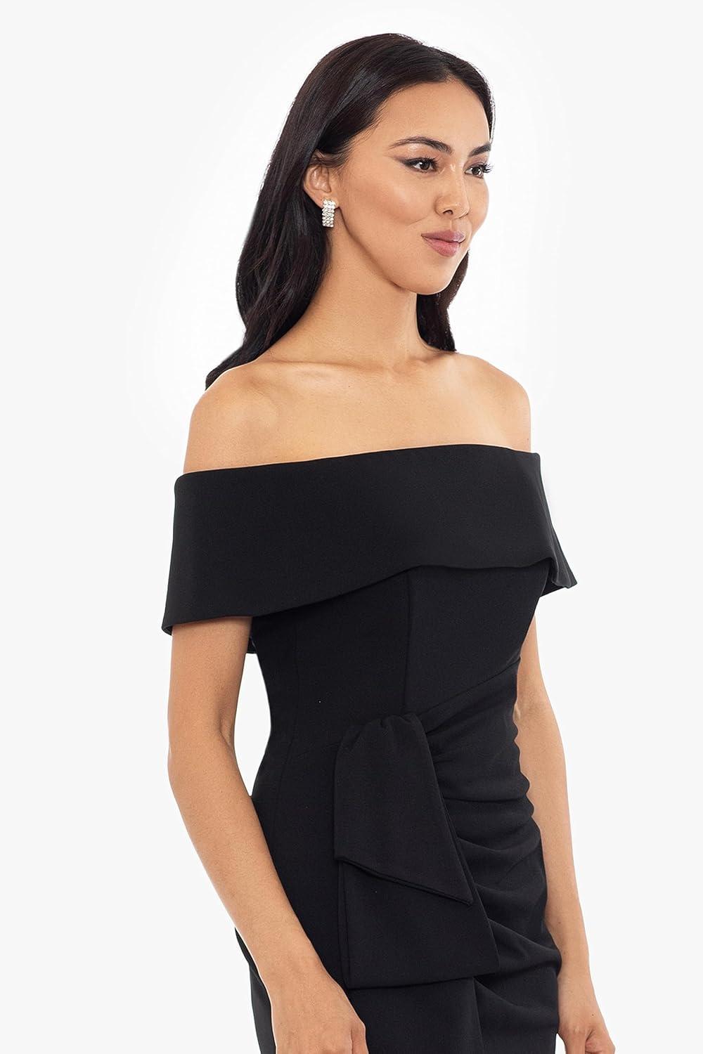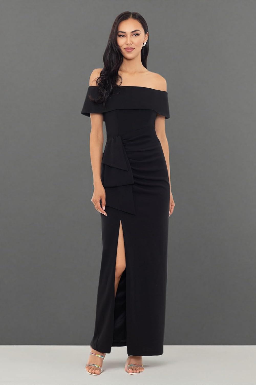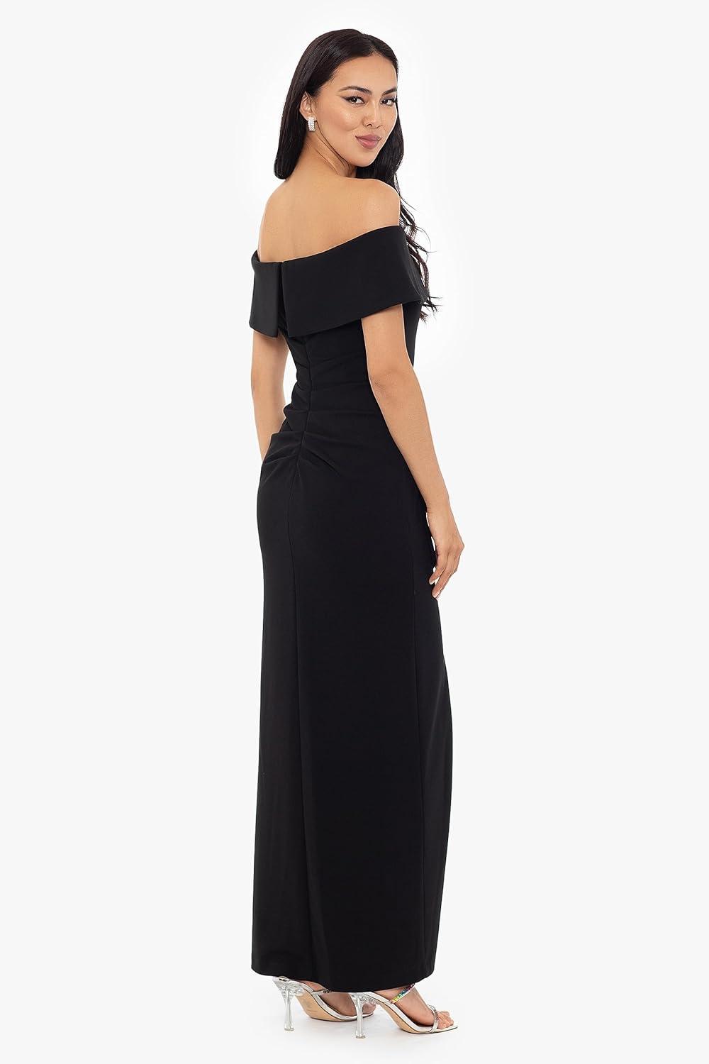 Xscape Women’s Long Off The Shoulder Scuba Crepe Slit Dress(Black)