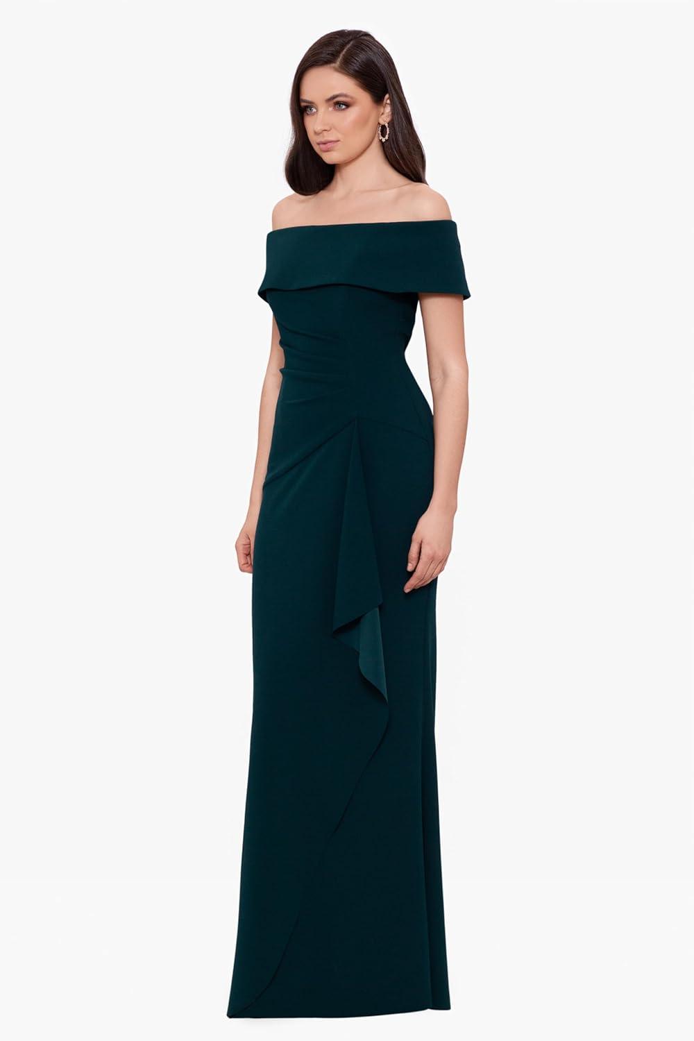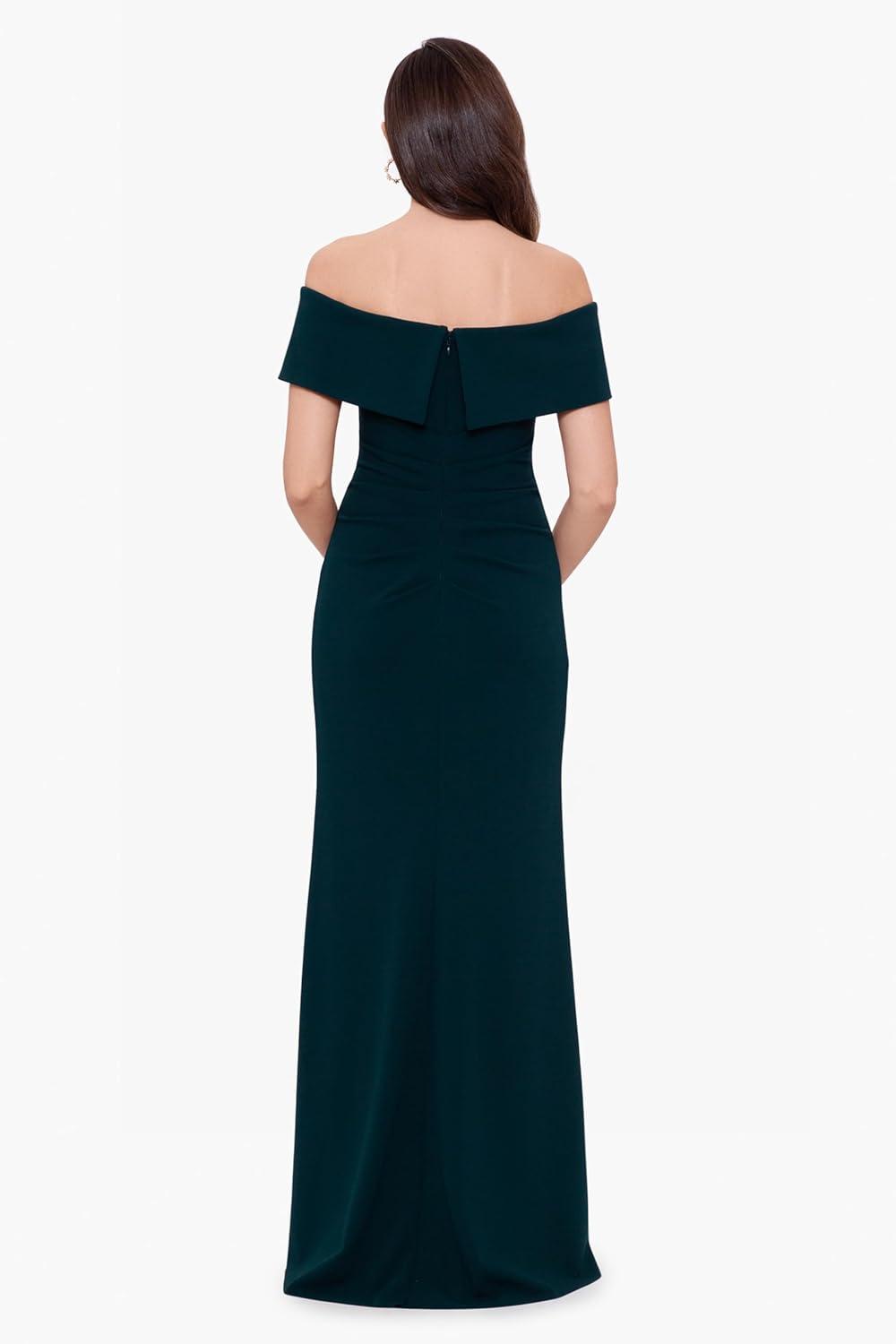 Xscape Women’s Long Scuba Crepe Off-The-Shoulder Dress with Center Back Zipper(Pine)